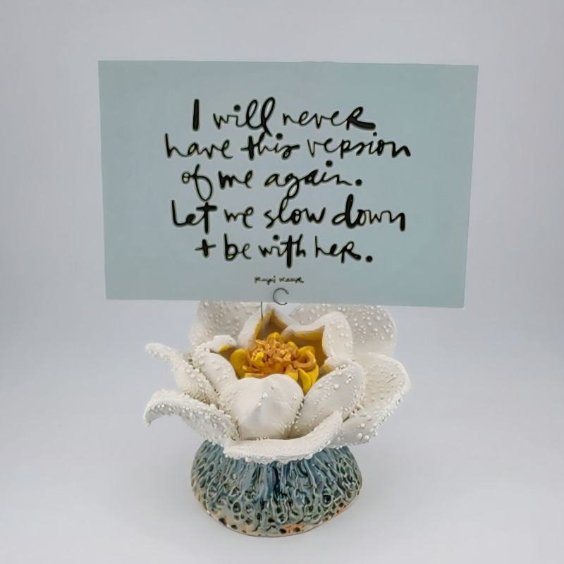Name: Blossom Card/Placard Holder Item #: 2105 Width: 4" Height: 3" Depth: 4" This piece is best experienced in person to appreciate its full texture and detail. Visit our gallery to see it for yourself. Gallery Information